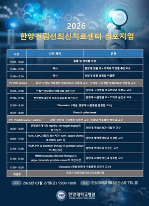 [라포르시안] 한양대학교병원(원장 이형중)은 3월 27일 오후 3시부터 한양대학교 의과대학 본관 6층 TBL룸에서 ‘2026 한양 전립선 최신치료 심포지엄(HYPER Center ...
