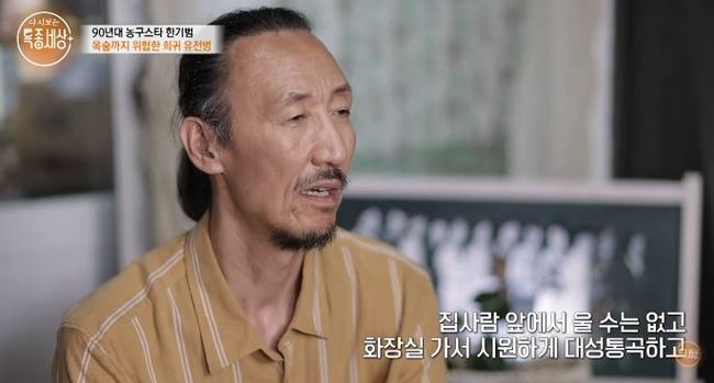 전 농구선수 한기범의 희귀 유전병이 눈길을 잡았다.2월 15일 채널 '특종세상-그때 그 사람'에는 '"혈관이 터져서 죽는 병이래요." 前 농구선수 한기범, 목숨까지 위협한 희귀 ......