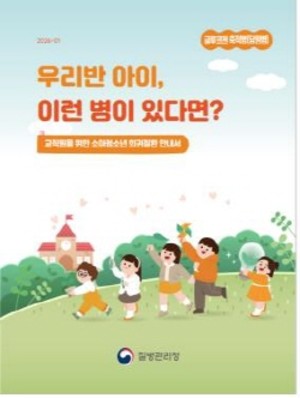 질병관리청과 교육부는 희귀질환을 가진 아동의 학교 생활 지원을 위해 전국 보육·교육기관 교직원이 활용할 수 있는「’26년 소아청소년 희귀질환 안내서」를 제작·배포한다.「소아청소년 희귀질환 안내서」는 2025년 5월 처음 제작되어 2025년 12월까지 매월 2개 질환씩 총 16개 질환에 대해 어린이집 및 학교 등에 배포된 바 있다. 올해에는 대상 질환을 총 24개로 확대하여 2026년 1월 가부키 증후군 및 글루코젠축적병(당원병)을 시작으로 12월까지 매월 2개 질환에 대해 순차적으로 제공할 예정이다.안내서에는 희귀질환 정보, 영유아...