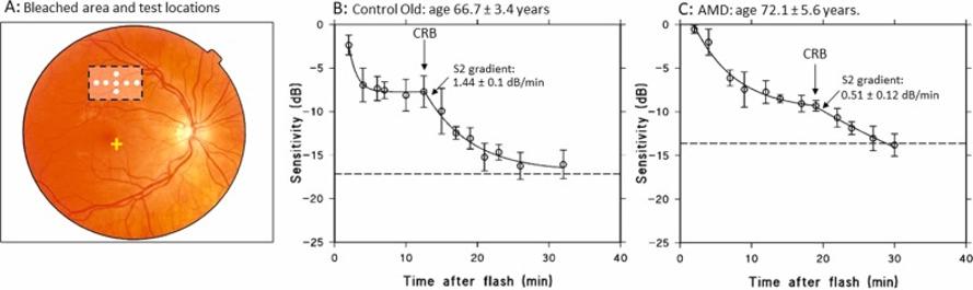 대조군(B)과 노년황반변성 환자(A)의 암순응 개선 S2 곡선. 사진=APJO [메디게이트뉴스 조운 기자, 임솔 기자] 황반변성 치료에 도움을 주는 성분을 임상적으로 증명한 연구결과가 나왔다. 황반변성 치료제 개발 가능성으로 주목을 끄는 가운데, 현재 영국에서 임상 2b상을 진행하고 있다. 최근 아시아태평양 안과저널(Asia-Pacific Journal of Ophthalmology, APJO)에 알트리젠(Altregen) 이윤희 박사, 대학로서울안과의원 안은정 원장, 기능성식품임상시험지원센터 채수완 센터장, 영국 UCL 안과학 연구소 알리 아이자즈 후세인 박사가 ‘Triterpenoid saponin–mediated recovery of visual deficits in age-related macular degeneration (AMD): Double-blind, placebo-controlled, randomised clinical trial’(https://doi.org/10.1016/j.apjo.2025.100143)논문을 게재했다. 황반변성(AMD)은 유럽에서 약 6700만명의 노인이 앓고 있는 질환으로 치료할 수 없는 실명의 원인으로 꼽히고 있다. 우리나라도 최근 식습관 및 생활 양식의 서구화로 황반변성이 증가하는 추세다. 황반변성의 가장 높은 위험 요인은 ‘나이’이며, 망막을 포함해 망막색소상피층(Retinal Pigment Epithelium, RPE) 브루크 막(Bruch’s Membran), 맥락막(Choroid) 등에서 다양한 정도의 위축과 변성이 관찰된다. 특히 브루크 막의 노화는 단백질 파편의 구조적 분해와 침착을 초래해 광수용체-망막 색소 사이의 영양소 전달과 노폐물 제거를 저해한다. 황반변성에서 브루크 막의 비정상적인 작동의 초기 임상 증상은 레티놀의 전달과 관련이 있다. 임상적으로 이는 밝은 빛 섬광 후 막대 광수용체 민감도의 회복 속도가 느려지는 비정상적인 암적응을 초래한다. 이에 연구팀은 트리테르페노이드 사포닌이 브루크 막 전역의 전달체계를 개선할 수 있다고 보고, 트리페르페노이드 사포닌이 황반변성의 시각적 결함을 되돌리는 데 사용할 수 있을지에 대한 가능성을 평가했다. 연구팀은 이를 위해 이중 맹검, 위약 대조 무작위 임상 시험을 진행했다. 총 11명의 황반변성 환자와 7명의 연령 일치 대조군 피험자를 모집해 소규모 원리 증명 연구를 수행한 것이다. 이들은 험프리 필드 분석기를 사용해 밝은 빛에 노출되고 난 후 간상세포의 민감도가 돌아오는 속도인 S2를 평가했다. 4개월 동안 사포닌을 하루 200mg 투약한 집단과 플라시보를 투여한 집단으로 나눴다. 먼저 황반변성 코호트의 S2는 0.41 ± 0.24 dB/min으로 대조군의 S2는 1.44 ± 0.1 dB/min였으나, 사포닌 치료 두 달 후 황반변성 피험자들은 S2가 0.92 ± 0.23 dB/min로 개선됐으며, 4개월 후에는 1.35 ± 0.19 dB/min로 추가 증가했다. 플라시보를 투여한 대조군 피험자의 S2는 변화하지 않았다. 결국 연구팀은 사포닌을 경구 보충하면 황반변성에서 감소된 S2가 역전되는 결과를 얻을 수 있다는 것을 확인했다. 연구팀은 “현재 황반변성의 악화를 막는 치료제는 없다. 노인 인구에서 황반변성의 유병률이 빠르게 증가함에 따라 긴급한 치료가 필요하다...