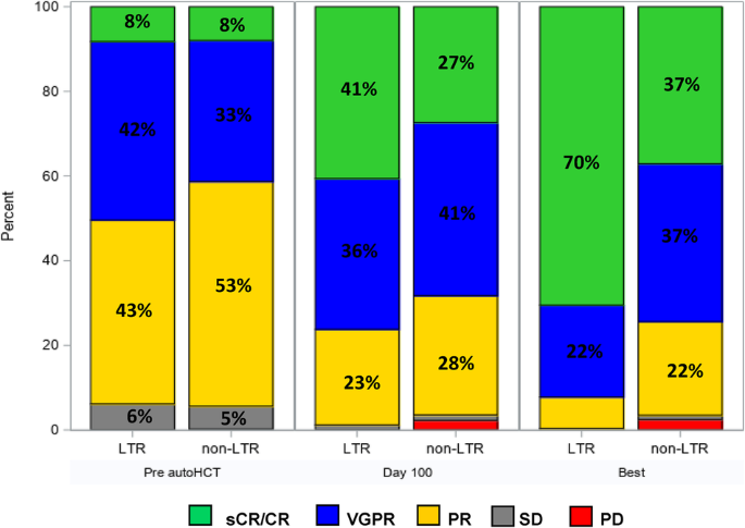 현재 연구에서 다발성 골수종(MM)이 불치병으로 여겨지지만, 약 15%의 환자들이 유도 요법과 자가 조혈모세포 이식(autoHCT) 후 14년 이상의 무진행 생존 기간(PFS)을 보였습니다. 이 장기 생존 환자(LTR)는 더 젊고, R-ISS 1단계 질환을 가질 가능성이 높으며, 표준 위험 세포유전학을 가지고, 골수 내 질병 부담이 낮고, 이식 후 유지 요법을 더 자주 받았습니다. LTR은 또한 이식 전후에 더 나은 반응을 보였으며, autoHCT 전 미세잔존질환(MRD) 음성 비율이 더 높았습니다....