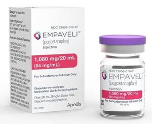 식품의약품안전처(처장 오유경)는 한독 수입 신약 ‘엠파벨리주(페그세타코플란ㆍ사진)’를 4월 29일 허가했다고 밝혔다.이 약은 보체단백질(C3 및 C3b)에 결합하여 보체연쇄반응을 저해하여 혈관 내ㆍ외 용혈을 억제하는 의약품이며 성인의 발작성 야간 혈색소뇨증 환자의 치료제 선택 폭을 확대하는 데 도움을 줄 것으로 기대한다.발작성 야간 혈색소뇨증(PNH) 은 X-염색체에 체성 돌연변이로 인해 적혈구가 보체반응에 민감하여 혈관내ㆍ외용혈 유발하는 질병으로 임상적으로는 조혈모세포가 감소된 재생불량성 빈혈로 나타나며 피로감, 만성 용혈로 인한...