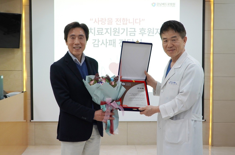 강남베드로병원, 3000만원 기부자 이현삼 씨에 감사패 전달 - 의학신문