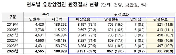 국민건강보험공단(이사장 정기석)은 근거중심의 건강검진 질 관리를 위해 ‘24년 검진기관에서 실시된 유방암검진의 유방촬영 판정유보율 현황을 분석한 결과, 평균 판정...
