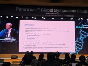 “기존 류마티스 관절염 치료제는 왜 항상 60%에서 멈춰 섰을까요.”현대바이오사이언스 자회사 현대ADM바이오(현대ADM)가 27일 연 글로벌 심포지엄 현장은 이 질문으로 시작됐다. 이날 발표는 단순한 신약 후보물질 소개를 넘어, 류마티스 관절염 치료가 왜 반복적으로 한계에 부딪혀 왔는...
