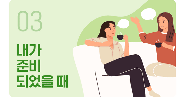 나의 상태가 괜찮을 때는 차분한 상황 속에서 대화가 가능합니다. 또한, 진단 소식을 접하게 되는 사람의 반응에도 잘 대처할 수 있습니다. 진단 사실을 전달받는 가족, 친구 혹은 지인이 예기치 못한 반응을 보일 경우를 대비하여, 이에 감당할 수 있는 에너지를 갖추고 대화에 임하는 것이 좋습니다.