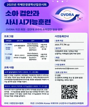 OVDRA Korea 국제지부, KIOF 양일간 ‘소아검안과 사시 시기능훈련’ 특강OVDRA Korea 국제지부 (사)한국시기능훈련교육협회(이사장 신효순)가 2025년 국제 안경광학산업 전시회(KIOF) 기간인 11월 20일(목)과 21일(금) 양일간 OVDRA 직전 회장이자 Southern 검안대 교수인 Marie Bodack을 초청해 ‘소아 검안과 사시 시기능훈련’을 주제로 임상 중심 특별 강연을 진행한다. 이번 교육은 소아 발달질환과 사시 환자 시기능훈련을 심층적으로 다루는 실질적 임상 세미나로 안경사들의 전문 역량 향상과 최신 글로벌 검안 트렌드 공유를 목적으로 마련됐다. 첫 날 강연인 ‘소아 발달질환과fn아이포커스5분 전조회 0
