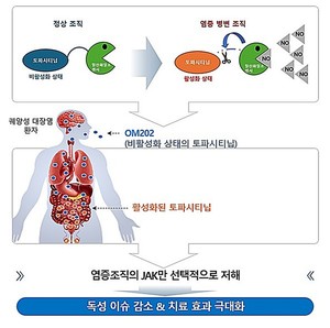 케이메디허브, 궤양성 대장염 치료제 원스톱 개발 지원[시사매거진 장진 기자] 케이메디허브(대구경북첨단의료산업진흥재단, 이사장 박구선) 의약생산센터가 궤양성 대장염 치료제 후보물질 개발을 원스톱으로 지원한다.의약생산센터는 옴니아메드(대표 김원종)의 궤양성 대장염 치료제 후보물질 'OM202'의 전주기 개발 지원을 통해 임상시험 진입을 위한 CMC 전범위를 지원한다.'OM202'는 NSDC(Nitric oxide Scavenger Drug Conjugate) 플랫폼 기반 후보물질로 대표적인 JAK 억제제인 토파시티닙에 일산화질소(Nitric oxide) 센서를 결합한 신개념 저분자 치료시사매거진18시간 전조회 0